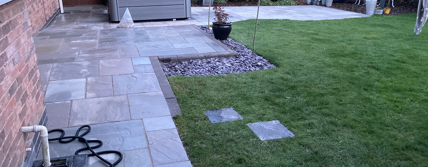 The result is a continuous patio that wraps around the property, joining up seamlessly with the original work and giving the customer a much larger, more usable outdoor space all the way around.